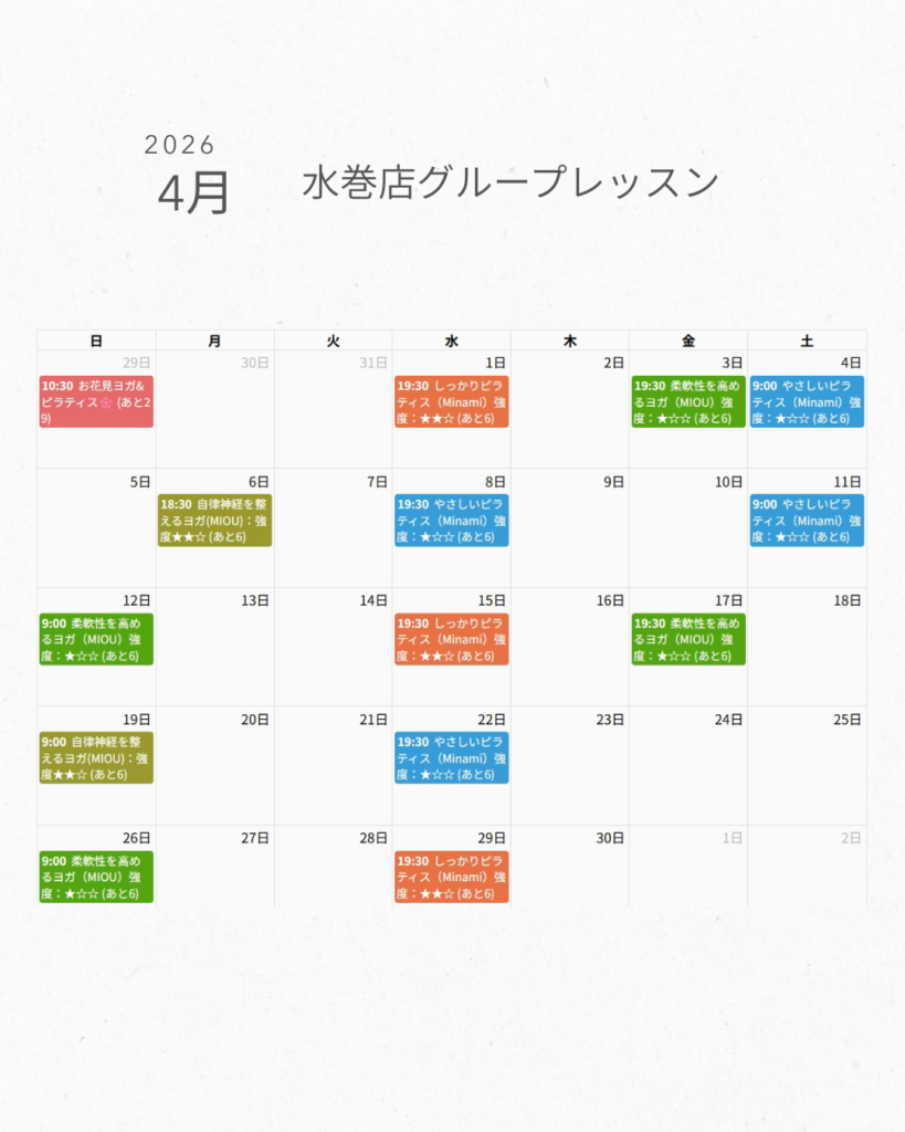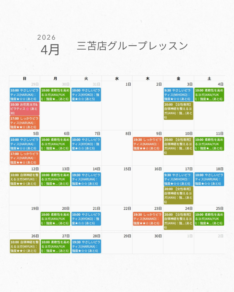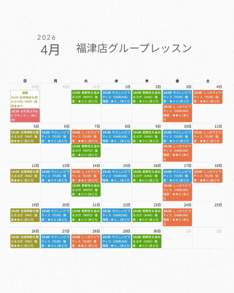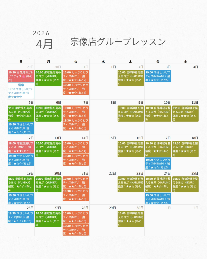 4月グループレッスンスケジュール